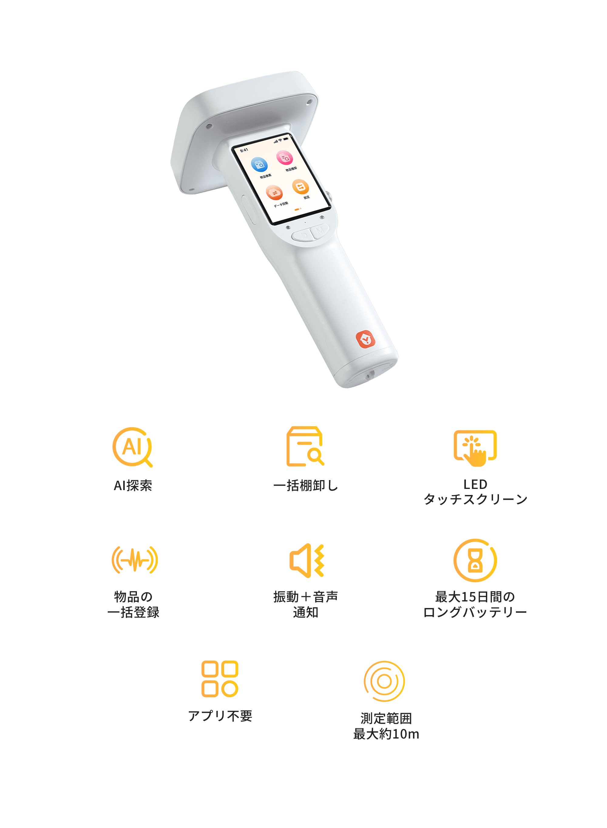 1.4インチの高精細タッチスクリーンにより、探索、在庫確認、棚卸しなどの操作をすべて